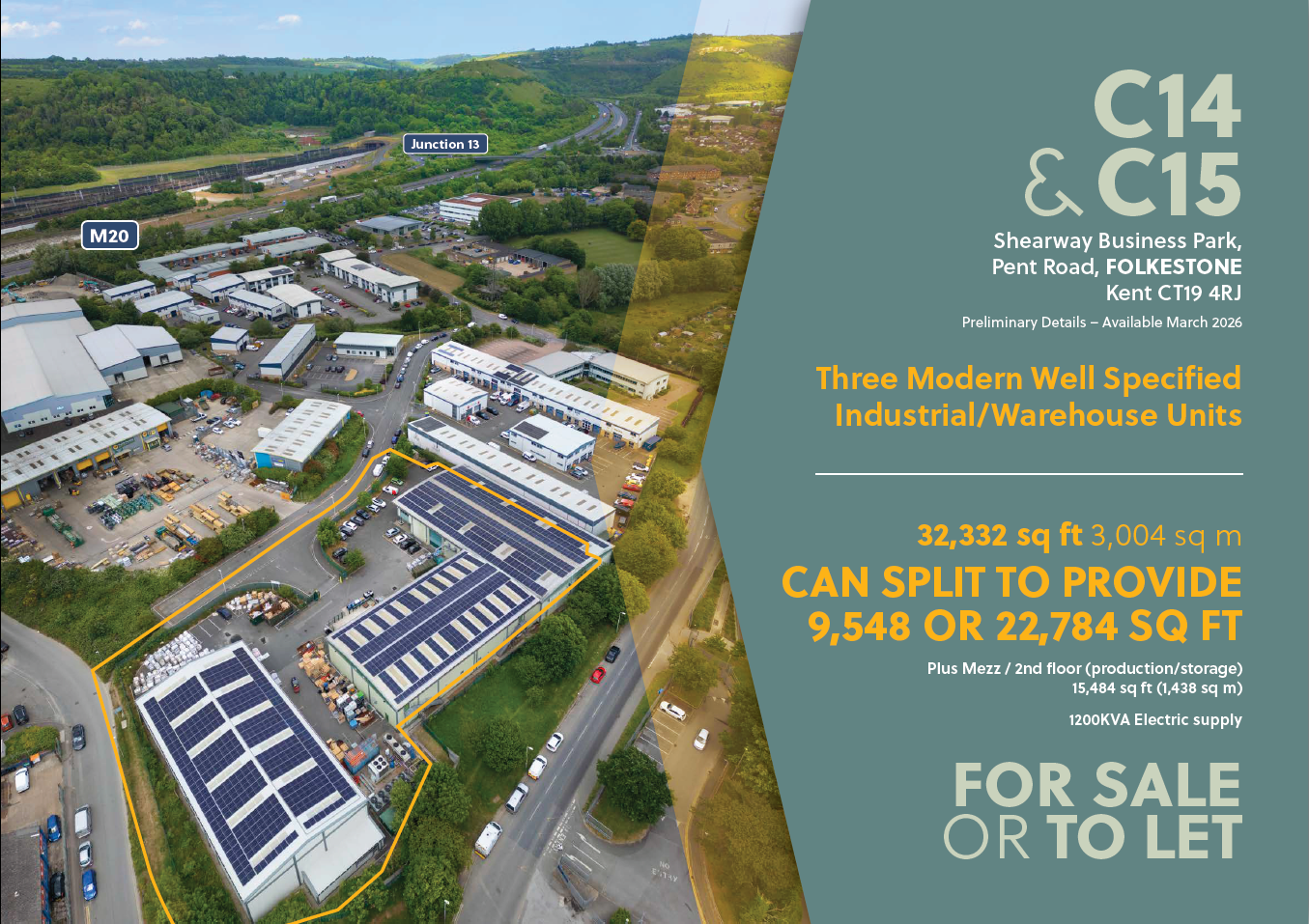 Shearway Business Park offers three modern industrial/warehouse units totalling 32,332 sq ft, with an additional 15,484 sq ft mezzanine.